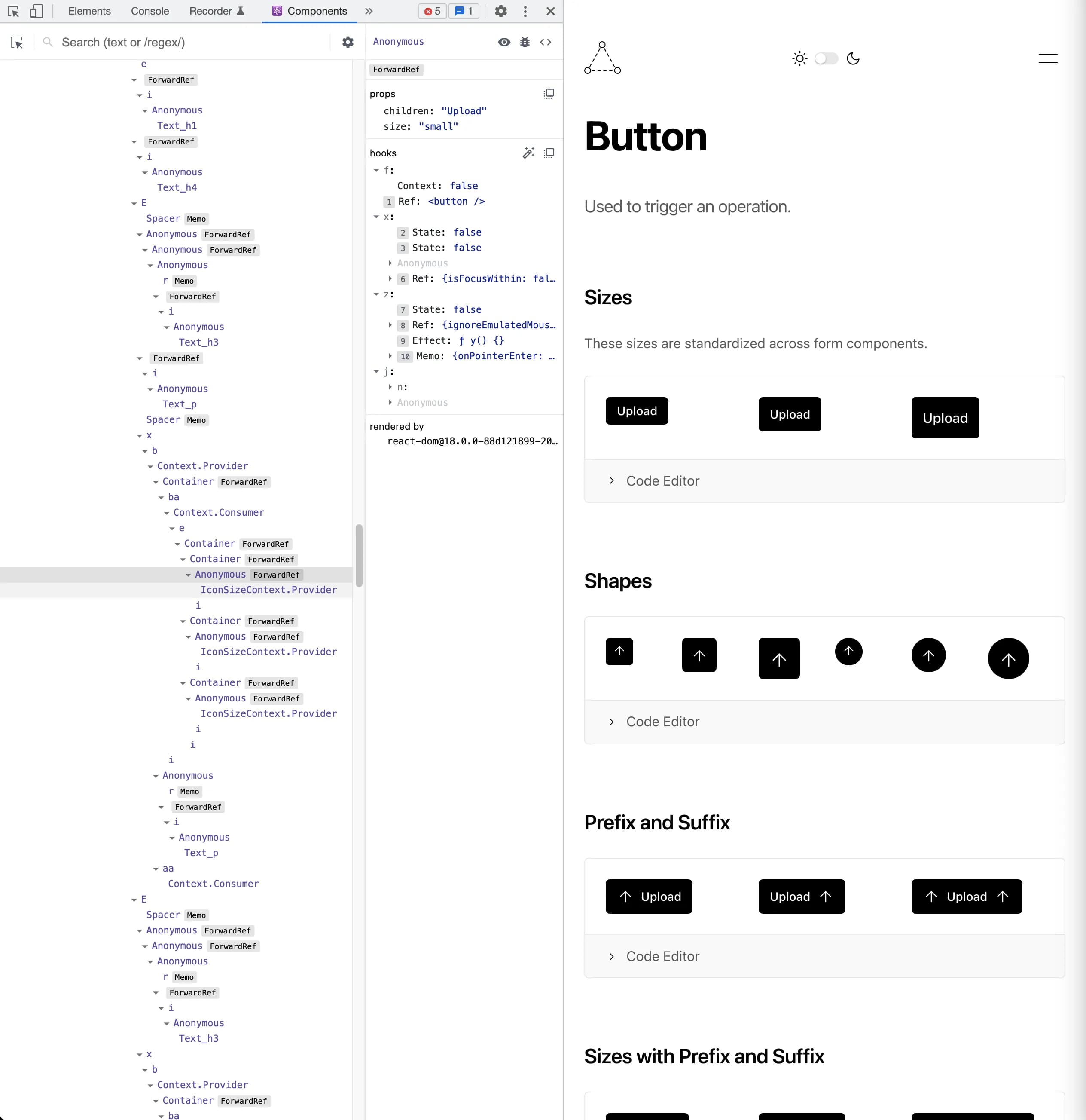 At times, there were complex behaviors that weren't easy to conclude just through the chrome inspector, so I reached for the React Devtools to view things like hooks usage, or context structures.