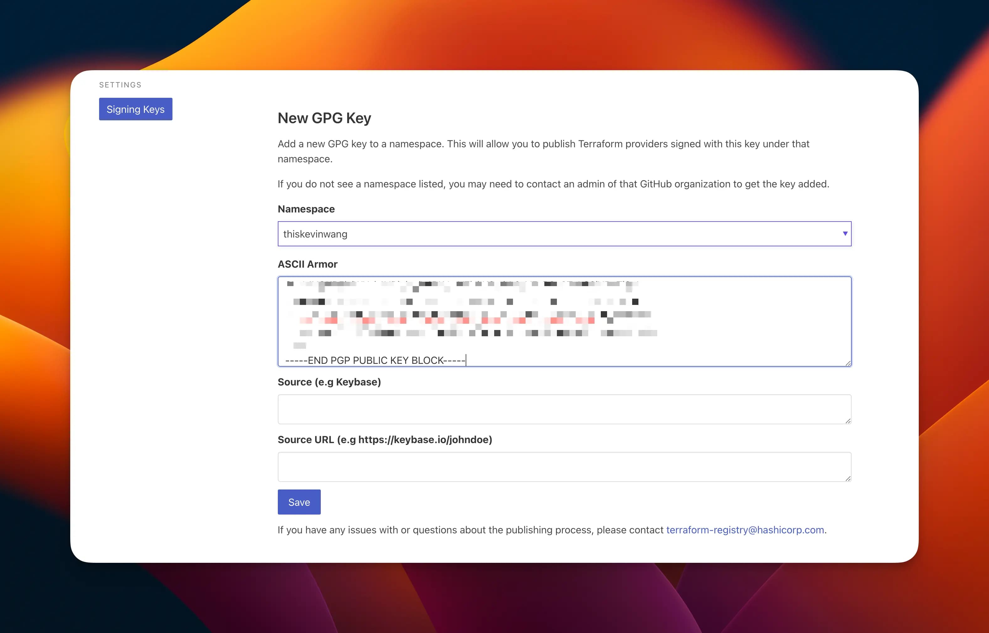At this point, Terraform Registry should be able to auto detect the provider, based on the name, and read its GitHub releases for expected artifacts.