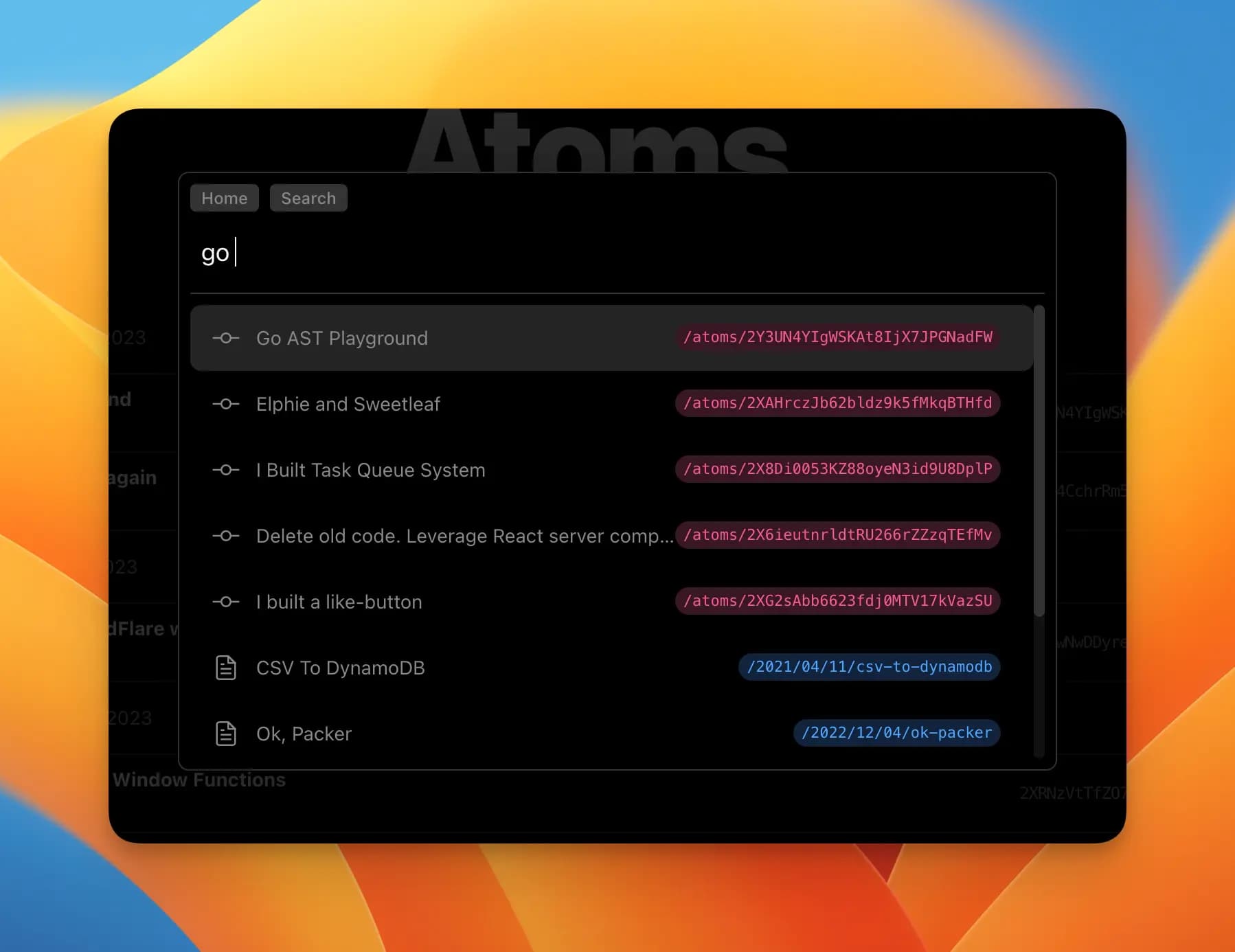 I set up in-memory full text search (for the second time) on all my site’s mdx documents.